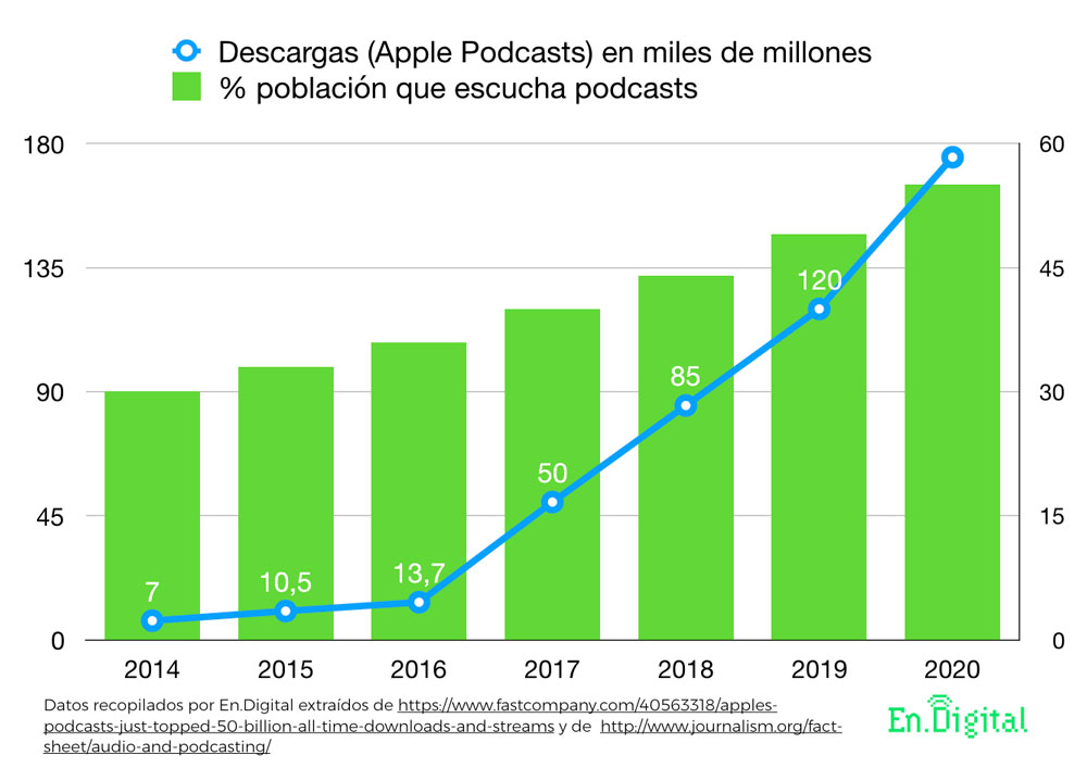 Con la combinación de distintos elementos y características digitales, contar historias en formatos digitales llegó para quedarse. Sin embargo, una forma un tanto reciclada de contar historias ha vuelto a vivir, el podcast, que logra dotar a los relatos de una voz única que cuenta la historia de modo íntimo y directo. El hecho de poder sentarse en la comodidad del hogar a escuchar el contenido, (a veces hasta haciendo otro tipo de actividad) es un arte que ha resurgido. Las razones son varias, aunque un pantallazo de Mark Escrig, Senior Planner para la Agencia Rushmore lo explica perfecto: «El descubrimiento del efecto de relajación que produce la escucha, y también la posibilidad de combinar el seguimiento del programa con otras actividades ha sido poderoso”. Los datos publicados en producthackers.com son contundentes.